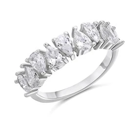 Silver Cubic Zirconia Pear Band Ring - F6088