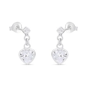 Silver  C.Z. Heart Drop Earrings - 15mm - F11035