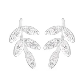 Silver Cubic Zirconia Leaf Stud Earrings - 10mm - F04043