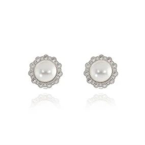 Silver Freshwater Pearl And Cubic Zirconia Stud Earrings - 8mm - F04035