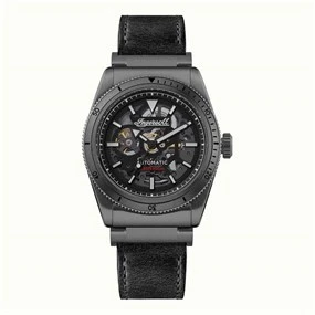 Reduced Ingersoll I13902 The Scovill Automatic Black Leather Strap Watch - W4988 100m Water Resistant 100m Water Resistant