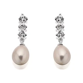 Silver Cubic Zirconia And Freshwater Pearl Drop Earrings - 24mm drop - F1154