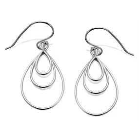 Silver Three Teardrop Hook Wire Earrings - 35mm drop - F0517