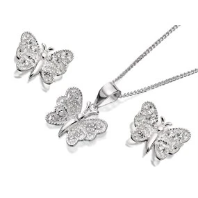 Silver Cubic Zirconia Butterfly Earring And Pendant Set - GS0406