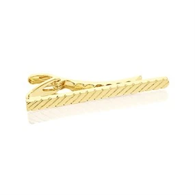 Gold Tone Diagonal Stripe Tie Slide - A5420