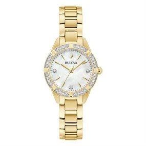 Bulova Sutton 98R297 Diamond Gold Tone Bracelet Watch - W83206 Genuine Diamond Genuine Diamond