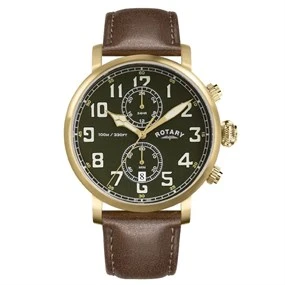Just In Rotary RGS10002/24 Apex100 Pilot Chronograph Brown Leather Strap Watch - W13287 100m Water Resistant 100m Water Resistant