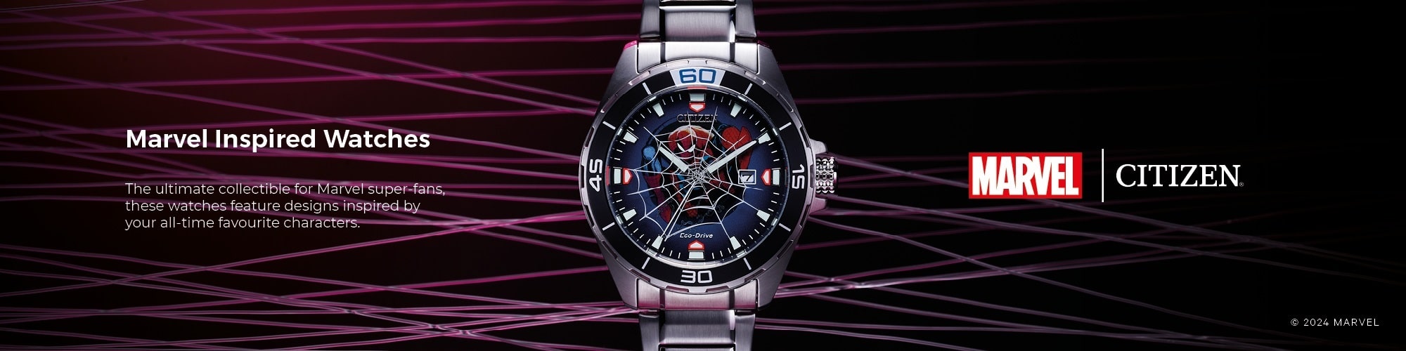 High quality Citizen watches inspired by your favourite Marvel characters. Explore a collection showcasing the most iconic heroes and villains from the world-renowned comics and movies. Combining stunning, sleek designs, exclusive art work and Citizen’s Eco-Drive technology, this is a range not to be missed. Shop Citizen Marvel watches with F.Hinds.