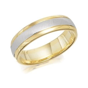 One Left! 9ct Two Colour Gold Satin And Polished Wedding Ring - 5mm - Size H Only - Z50406 Made in the UK Made in the UK
