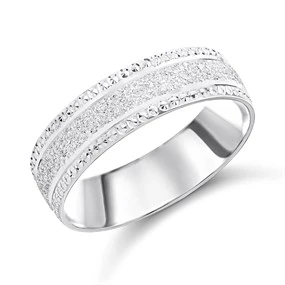 9ct White Gold Sparkle Centre/ Beaded Edge Wedding Ring - 5mm - R2338