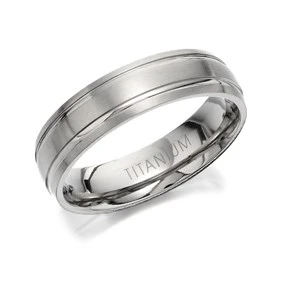 Titanium Matt Finish Double Groove Ring - 6mm - J1112