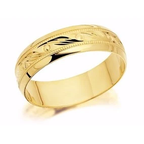 9ct Gold Diamond Cut Leaf Wedding Ring - 6mm - R4221 Made in the UK Made in the UK